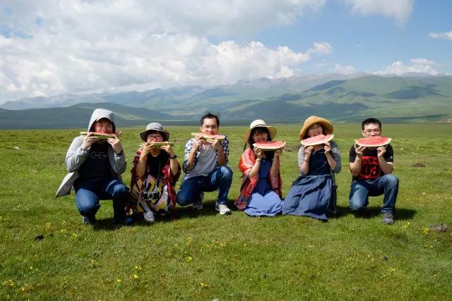 青海的西瓜,个大、味甜,还便宜。我们买了两个,切好放车上,车开到一片大草原,我们没见过草原的都兴奋得尖叫,于是提议去大草原吃西瓜。