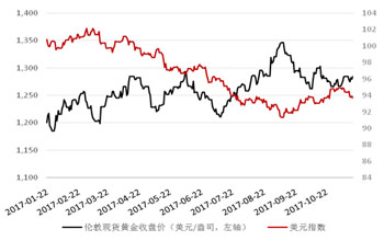 11月13日当周欧佩克公布的10月原油月度报告显示,欧佩克11个需要减产的成员国在10月份的减产执行率较9月份上涨了2个百分点,至100%。而在欧佩克主要产油国的10月细分产量数据方面,除沙特10月份的日均产量较9月份上涨8.3万桶以外,伊朗和伊拉克在10月份的原油产量较前月合计下降了16.9万桶。此外欧佩克双双上调了2017年全球原油需求增速与2018年欧佩克原油需求这两个预期值,调升幅度分别达到了5.52%与1.09%。但欧佩克的这份暗示原油将趋于供不应求的月度报告并未触发市场投资者的强烈买盘,因为根据11月8日当周的EIA数据显示,美国的原油产量目前已达到962万桶/日,接近自2000年以来的历史峰值,加之上周美国的石油钻井数已连续第二周反弹,美国原油的充沛供给有力冲击了欧佩克减产对原油的利多影响。此外当前布美两油价差已接近自2015年8月以来的高位,达到6.38美元左右,在美油出口趋稳与套利交易频繁的双重驱动下,布油主力期货价格也在周中由64快速向61美元/桶逼近。而在11月17日纽盘因有消息称沙特可能加大减产力度,促使油价大幅飙升,国际金价扩大日内涨幅,并帮助后者在当日触及周高的同时摆脱前四日日K线主体部分连续低于1280的颓势。